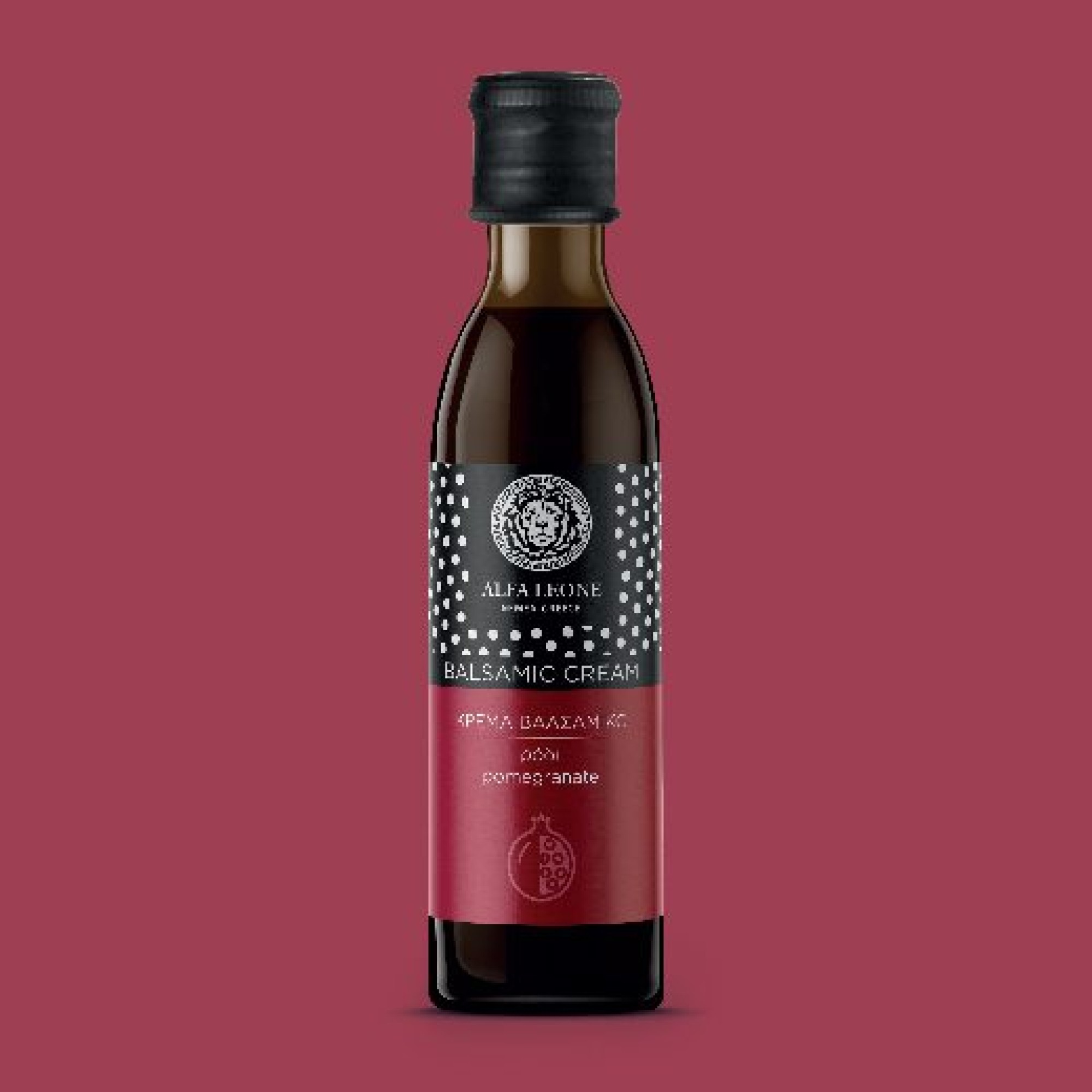 Η κρέμα βαλσαμικού ρόδι ξεχωρίζει για το έντονο άρωμα και την ξεχωριστή γεύση της: γλυκιά με ίχνη ευχάριστης οξύτητας, καθώς είναι η μοναδική που περιέχει φρέσκο φυσικό χυμό από ρόδια.