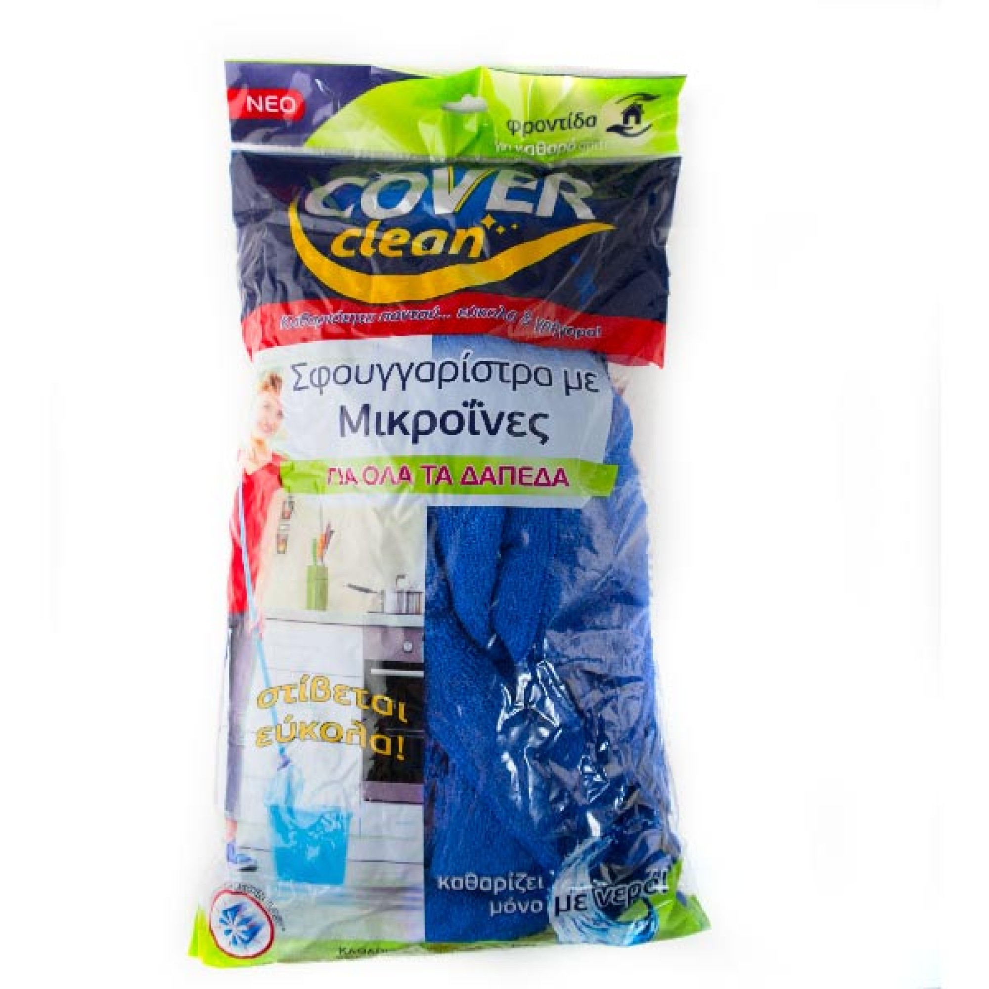 Οι νέες σφουγγαρίστρες Cover με μικροΐνες καθαρίζουν άψογα κάθε είδους επιφάνεια, έχουν μεγάλη απορροφητικότητα, στίβονται εύκολα και δεν αφήνουν σημάδια πίσω τους.