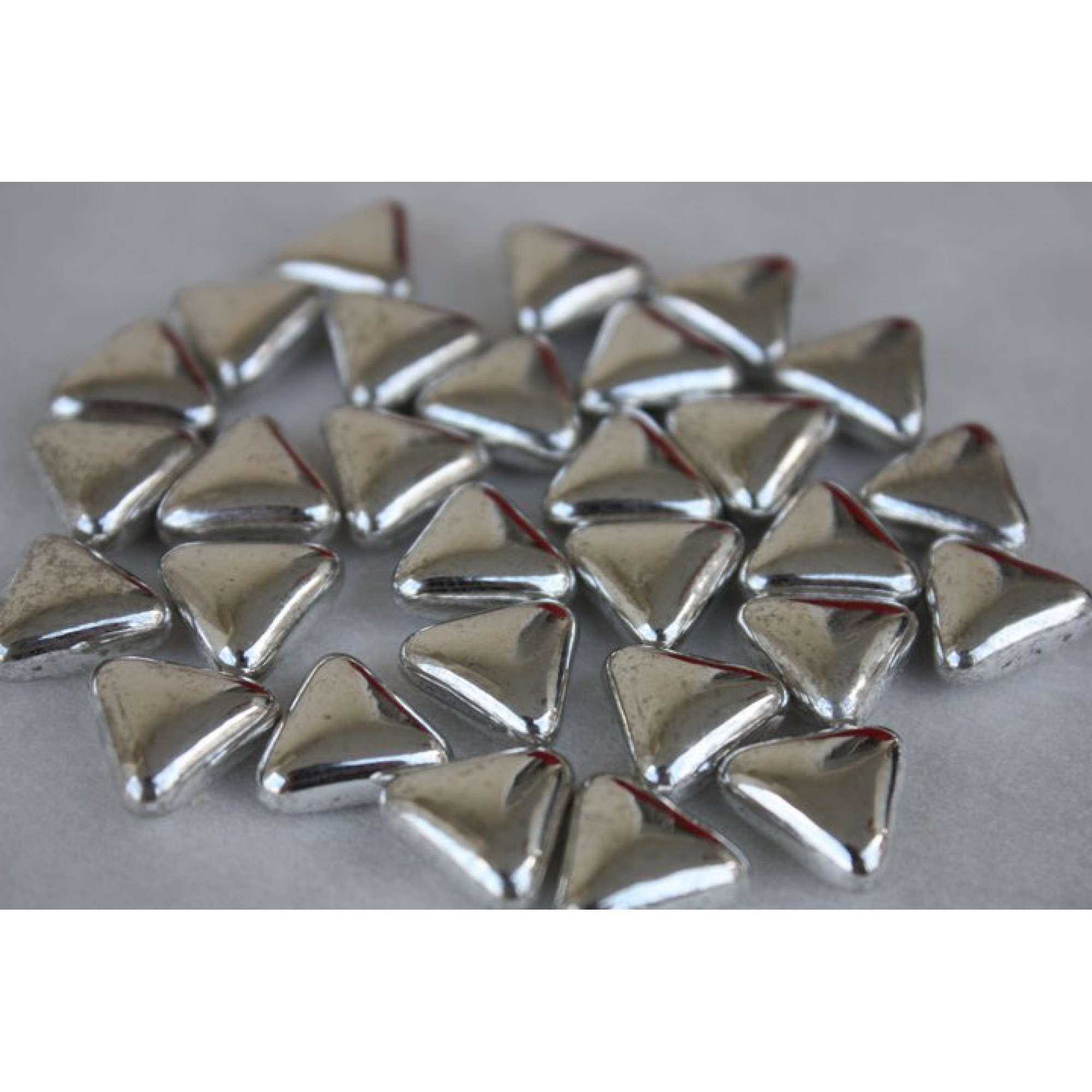 Αργυρά κουφέτα εξαιρετικής ποιότητας, λεία και γυαλιστερά, πάντα με το ιδιαίτερο άρωμα των κουφέτων Βιαμίχ. Τρίγωνο 1,3 x 1,3 x 0,6cm