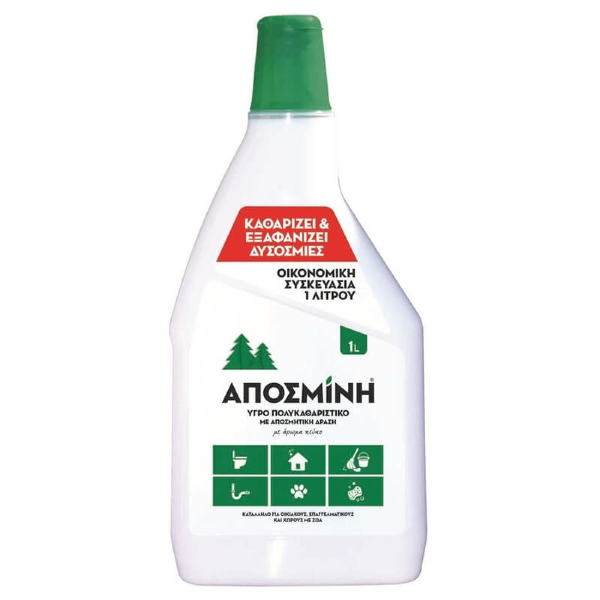 Η Αποσμίνη είναι υγρό αποσμητικό σκεύασμα. Χρησιμοποιείται στο σφουγγάρισμα, την λεκάνη, το νιπτήρα, το νεροχύτη, τα σιφώνια και όπου αλλού μπορεί να υπάρχει δυσοσμία.
