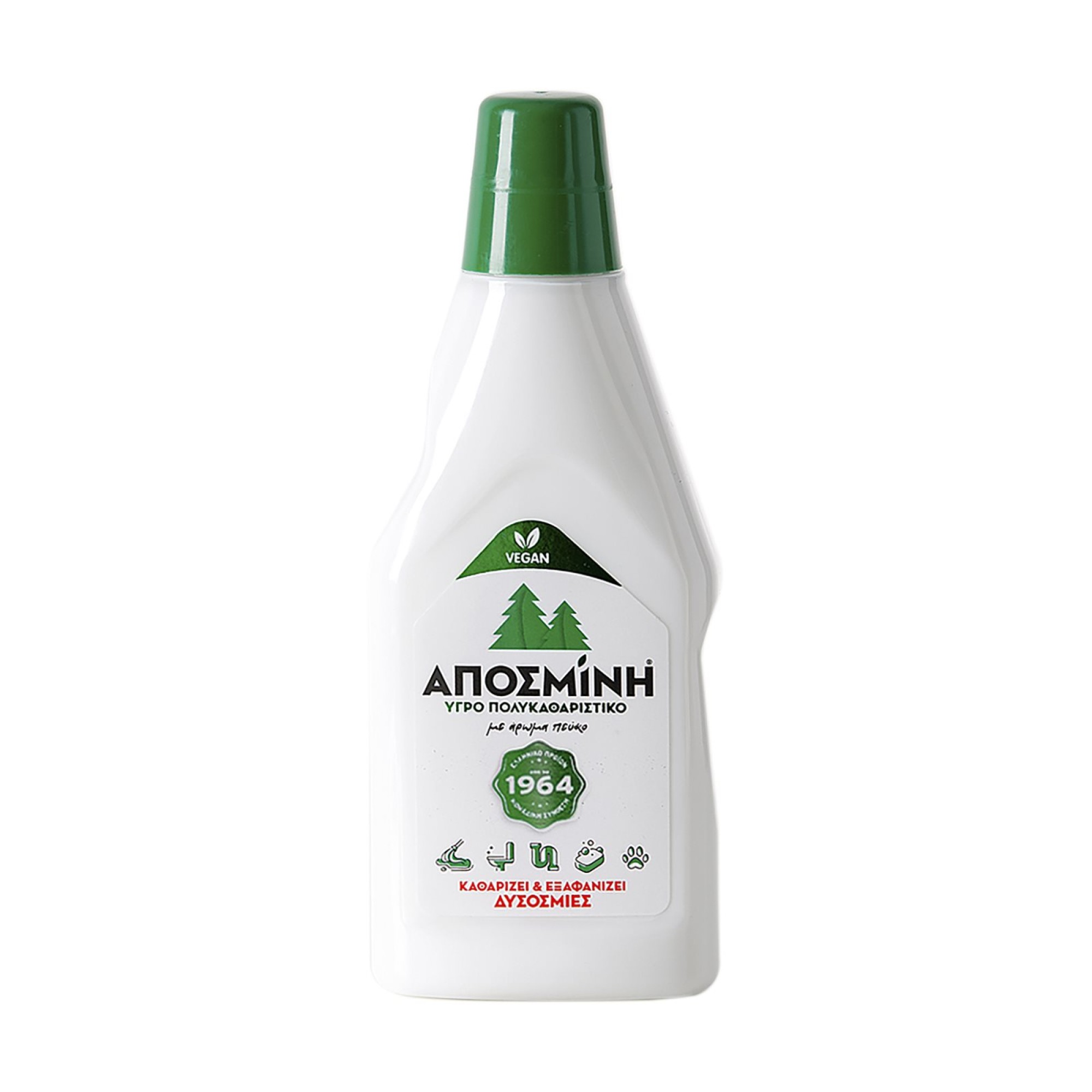Η Αποσμίνη είναι υγρό αποσμητικό σκεύασμα. Χρησιμοποιείται στο σφουγγάρισμα, την λεκάνη, το νιπτήρα, το νεροχύτη, τα σιφώνια και όπου αλλού μπορεί να υπάρχει δυσοσμία.