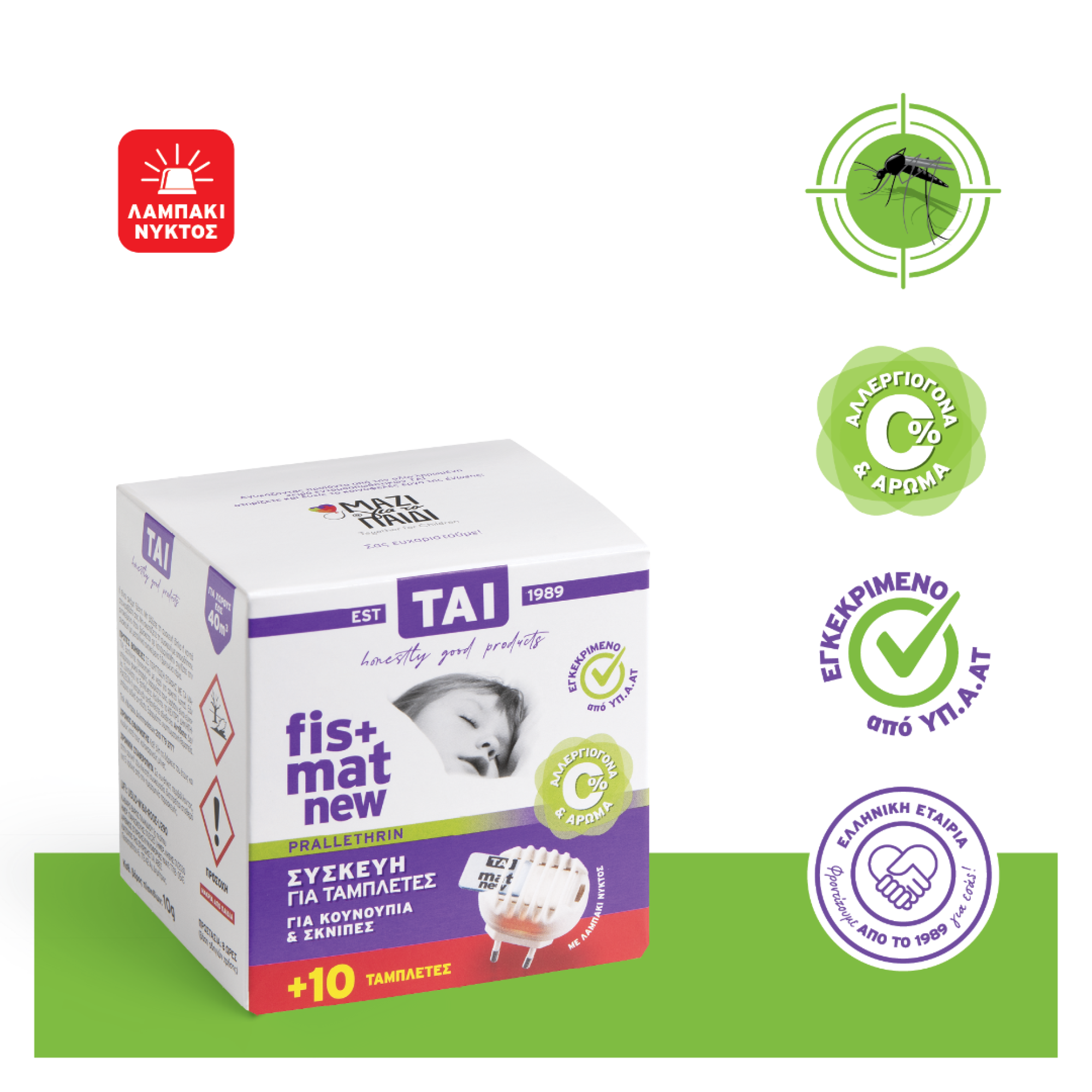 Συσκευή FIS για εντομοαπωθητικές ταμπλέτες με λαμπάκι λειτουργίας που χρησιμεύει και ως φωτάκι νυκτός .